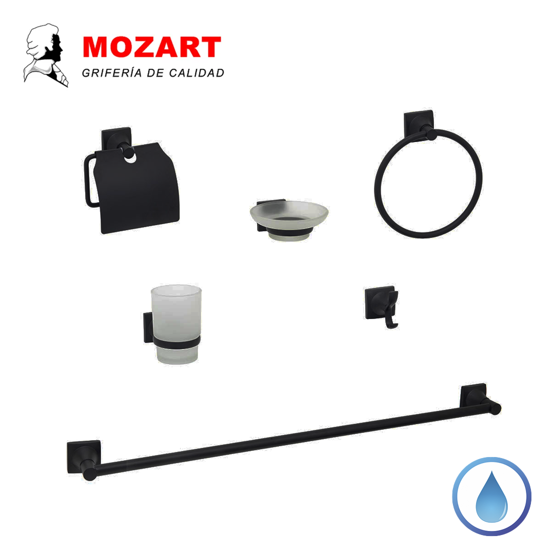 MOZART SET BAÑO NIZA 6 PIEZAS NEGRO